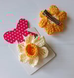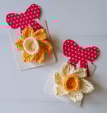 The sweetest Spring daffodils set on little crocodile clips. Pop in your hair or add to your lapel or Spring tote bag!